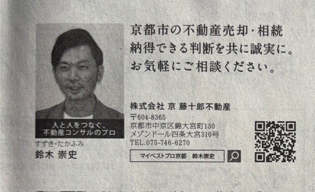株式会社 京 藤十郎不動産 > 株式会社 京 藤十郎不動産のスタッフブログ記事一覧 > 京都新聞さんに掲載頂きました。